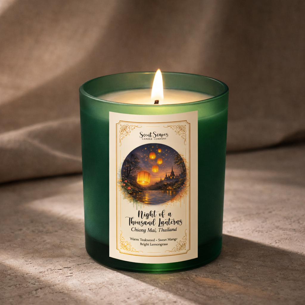 Night unfolds beneath ancient teakwood and mist-softened temples. Laughter mingles with the sweet scent of comforting mango sticky rice and a whisper of lemongrass drifting from the market stalls. Floral baskets flicker gently along the river while thousands of lanterns rise and dance like stars across the sky.